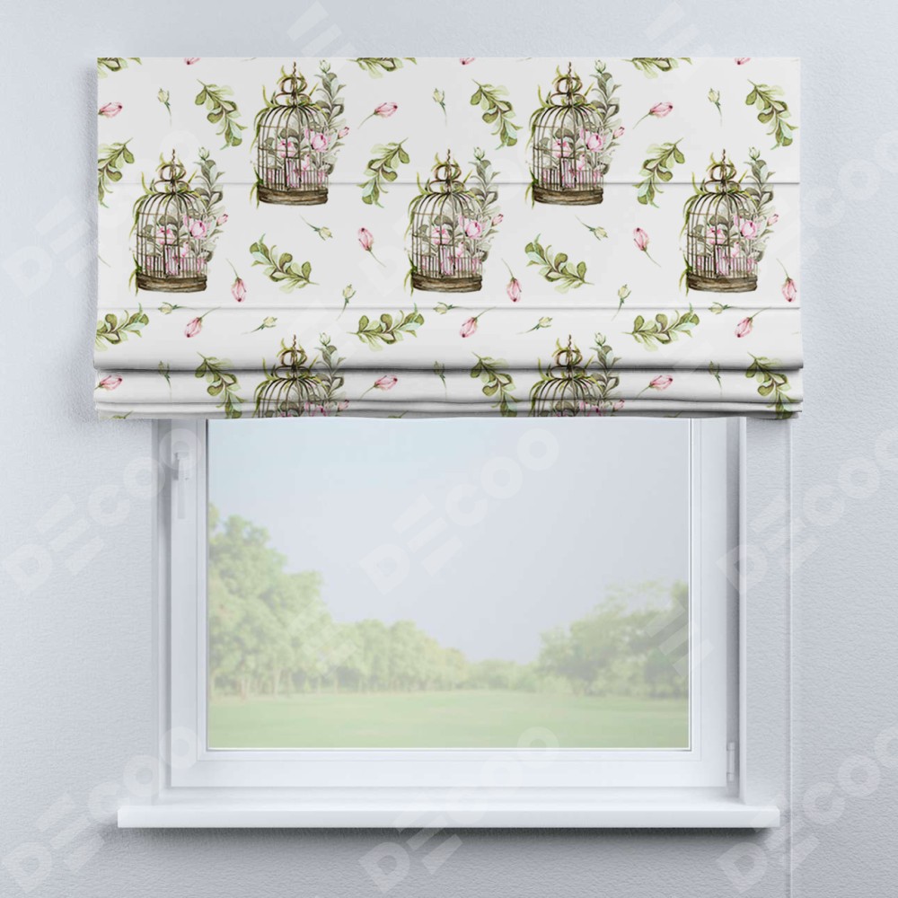 Классическая римская штора представляет собой полотно прикрепленное к карнизу, с обратной стороны полотна вшиты планки. С их помощь при сборе шторы образуются красивые горизонтальные складки.