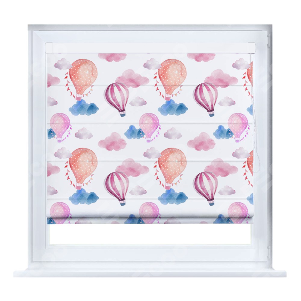 Римская штора производителя «Cortin», устанавливается на створку окна, пошита из ткани блэкаут с нанесением сублимационной печати «Полёт в облаках». Штора шьётся по индивидуальным размерам, для данного типа римской шторы возможная ширина от 35 до 150 см., высота до 250 см.