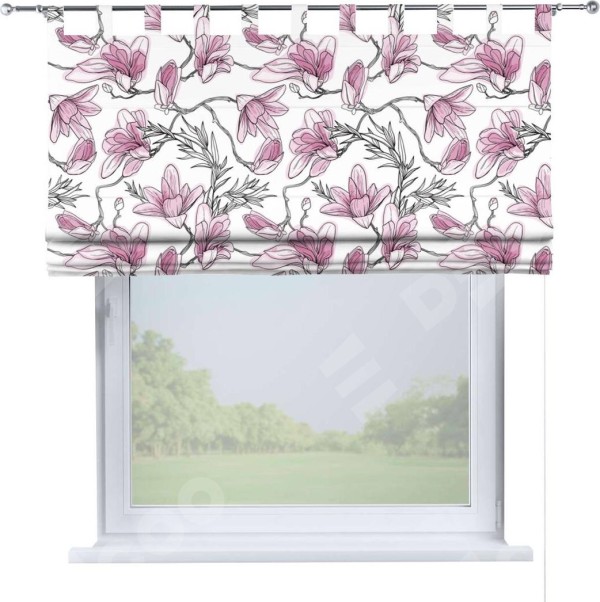 Римская штора производителя «Cortin», используется для проёма, пошита из ткани блэкаут с нанесением сублимационной печати «Цветки магнолии». Данная модель пошита на петлях, комплектуется на выбор круглым карнизом и подходит для монтажа на стену. Римская штора на петлях имеет простую систему регулировки высоты, отличительным преимуществом данной модели является простой способ монтажа. Достаточно повесить ее на трубу и штора готова!