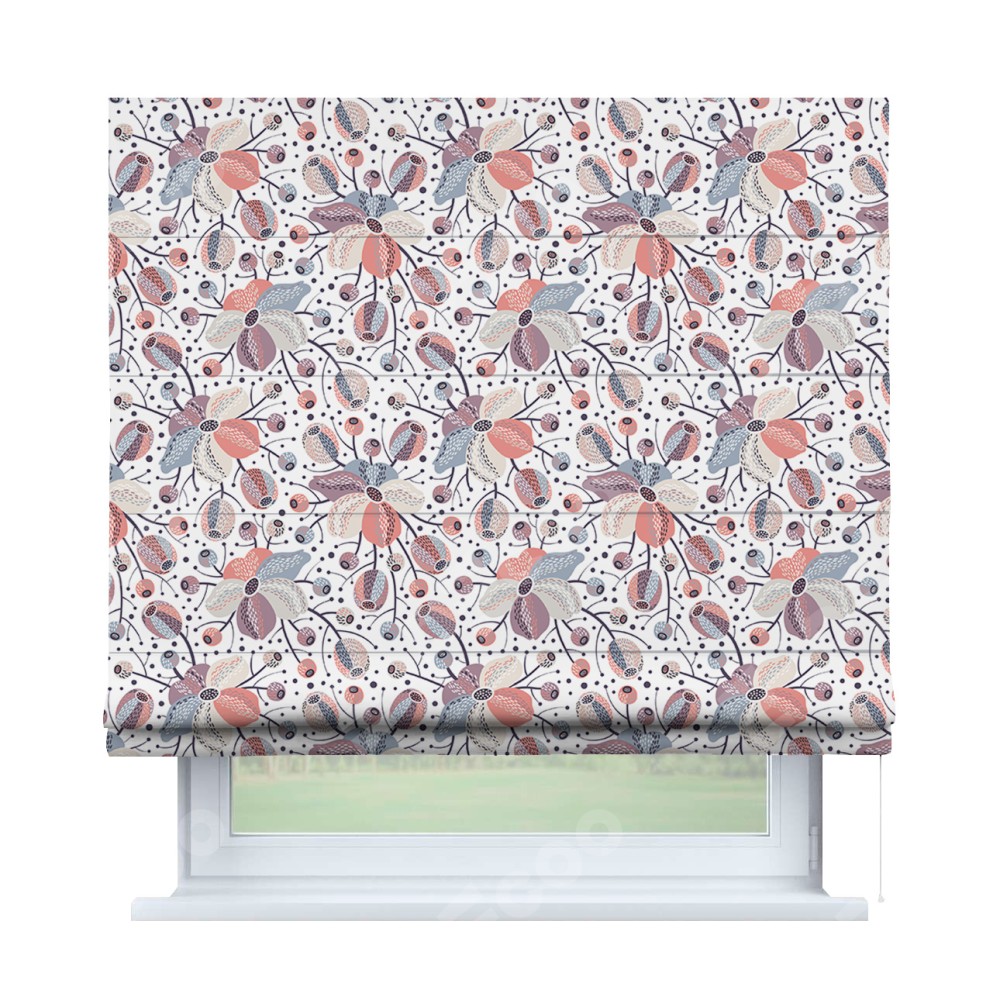 Римская штора производителя «Cortin», используется для проёма, пошита из ткани блэкаут с нанесением сублимационной печати «Цветочный микс». Имеет универсальный механизм и подходит для монтажа: на потолок, на стену и в нишу.