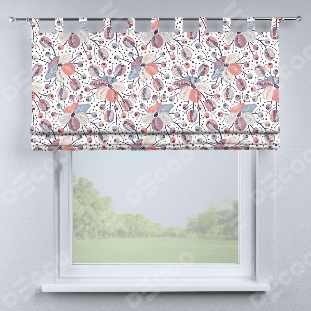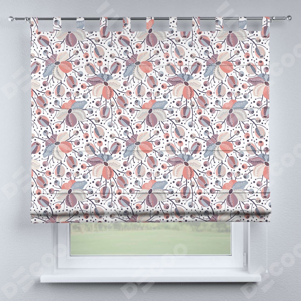Римская штора производителя «Cortin», используется для проёма, пошита из ткани блэкаут с нанесением сублимационной печати «Цветочный микс». Данная модель пошита на петлях, комплектуется на выбор круглым карнизом и подходит для монтажа на стену. Римская штора на петлях имеет простую систему регулировки высоты, отличительным преимуществом данной модели является простой способ монтажа. Достаточно повесить ее на трубу и штора готова!