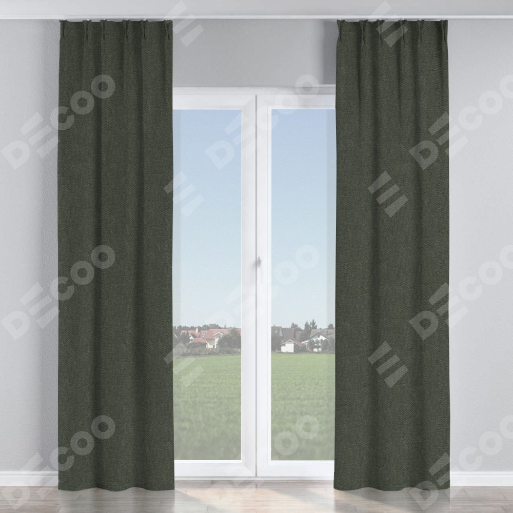 Комплект прямых штор, от производителя «Cortin», пошиты из ткани лён димаут графитово-серый, артикул ткани 35129. С изнаночной стороны в верхней части штор пристрачивается шторная лента с декоративными складками «Кустик». Для создания элегантных складок прямые шторы шьются по стандарту с коэффициентом 1:2 (на 100 см. ширины проёма 200 см. ширины ткани).