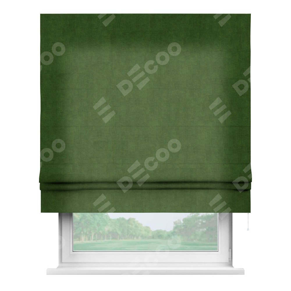 Римская штора «Кортин» для проема, ткань вельвет тёмно-салатовый