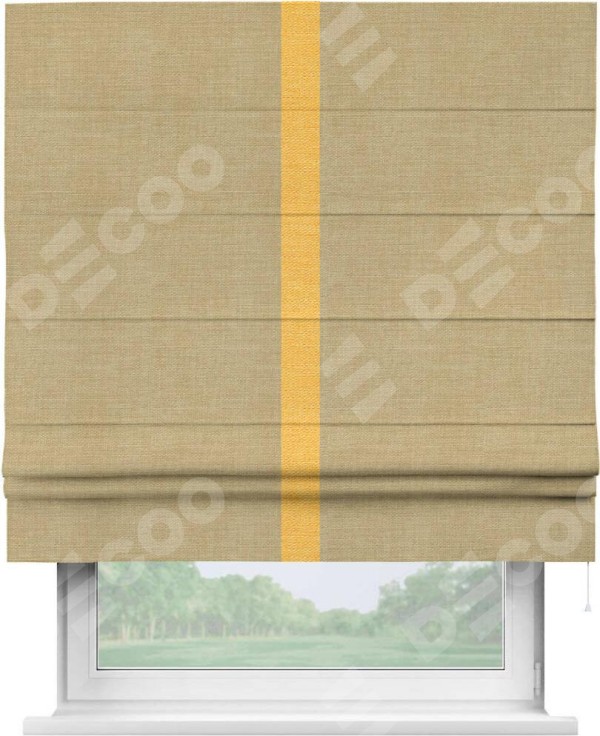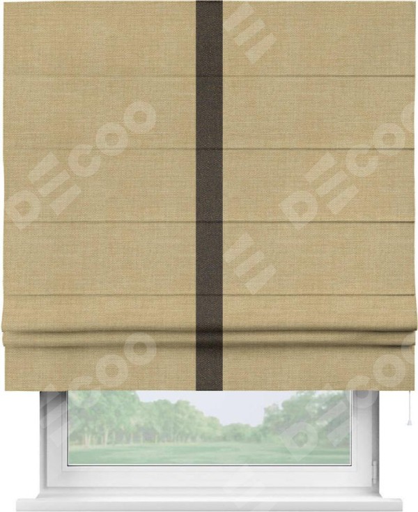Римская штора «Кортин» с кантом Хайвэй, для проема, ткань лён бежевый