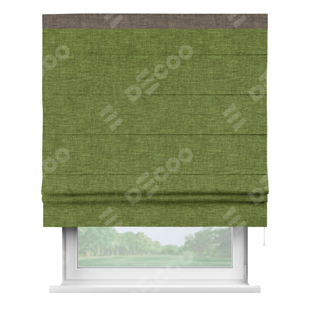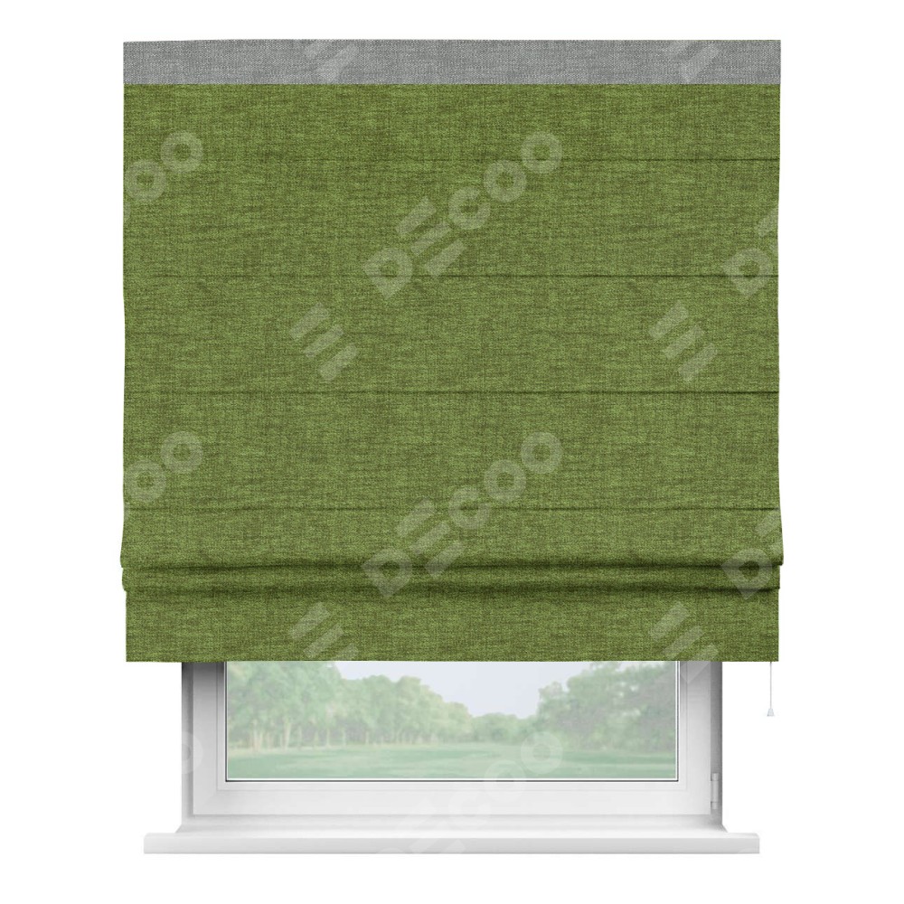 Римская штора «Кортин» с кантом Кинг, для проема, ткань рогожка димаут, салатовый