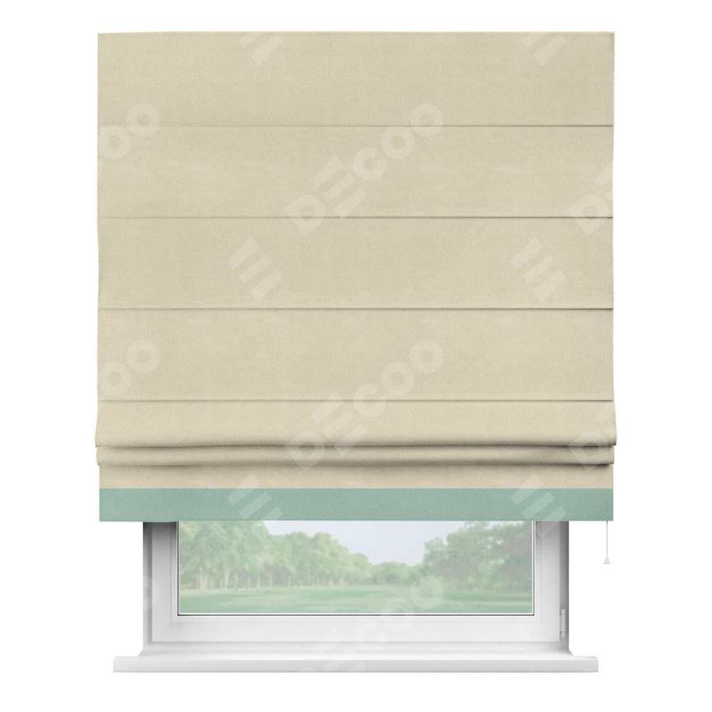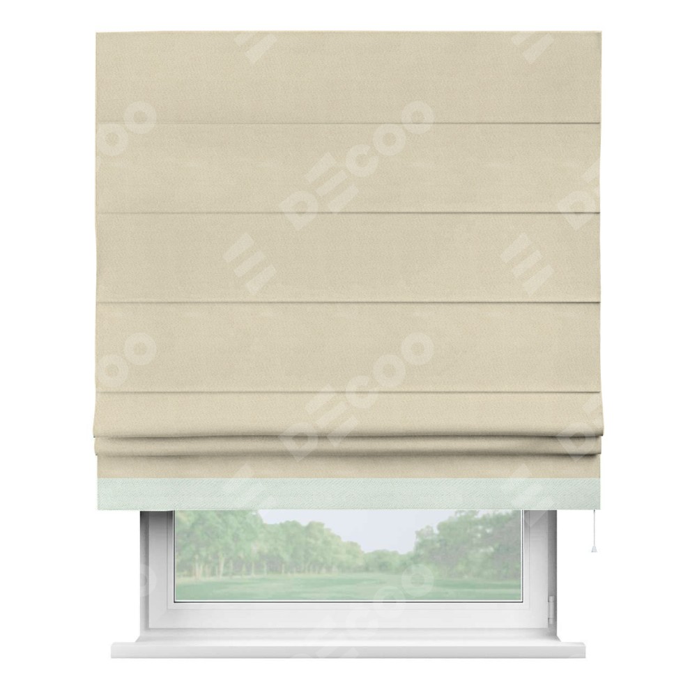 Римская штора производителя «Cortin», используется для проёма, пошита из ткани блэкаут однотонный бежевый, артикул ткани 13125. Отделка шторы кантом «Джестер», ткань для канта используется из блэкаута однотонного разной расцветки на выбор. Имеет универсальный механизм и подходит для монтажа: на потолок, на стену и в нишу.