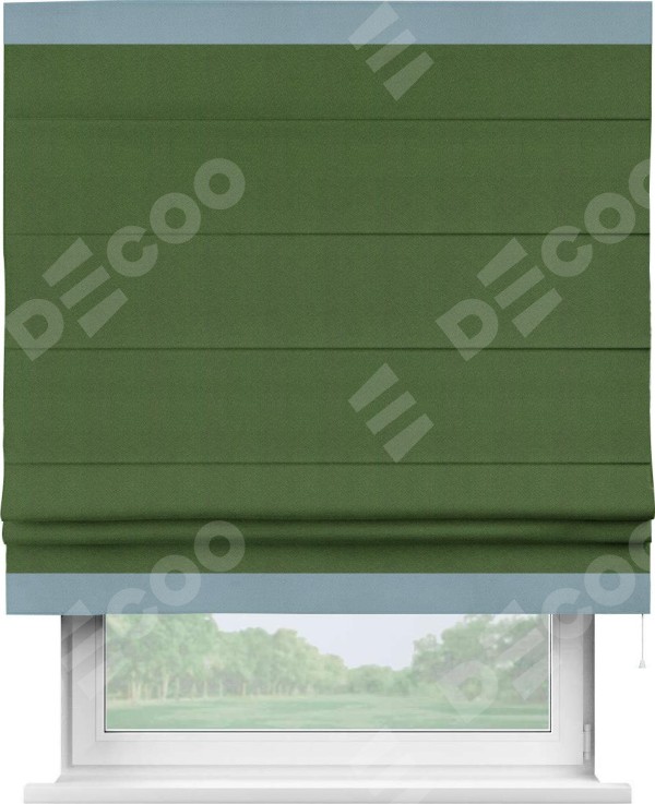Римская штора «Кортин» с кантом Горизонт, для проема, ткань блэкаут однотонный зелёный перламутр