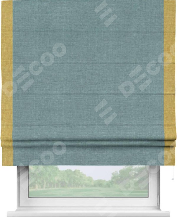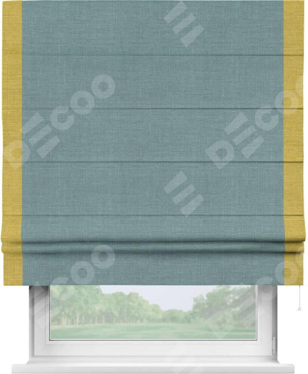 Римская штора с кантом Стрим Дуо, для проема, выполнена в ткани лён голубой