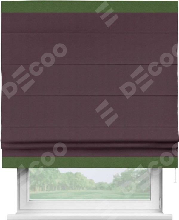 Римская штора производителя «Cortin», используется для проёма, пошита из ткани блэкаут однотонный сиреневый, артикул ткани 29333−2. Отделка шторы кантом «Горизонт», ткань для канта используется из блэкаута однотонного разной расцветки на выбор. Имеет универсальный механизм и подходит для монтажа: на потолок, на стену и в нишу.