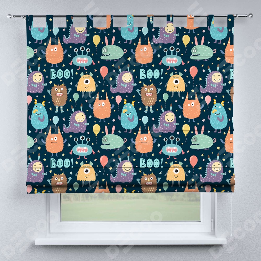 Римская штора производителя «Cortin», используется для проёма, пошита из ткани блэкаут с нанесением сублимационной печати «Звёздные страшилки». Данная модель пошита на петлях, комплектуется на выбор круглым карнизом и подходит для монтажа на стену. Римская штора на петлях имеет простую систему регулировки высоты, отличительным преимуществом данной модели является простой способ монтажа. Достаточно повесить ее на трубу и штора готова!