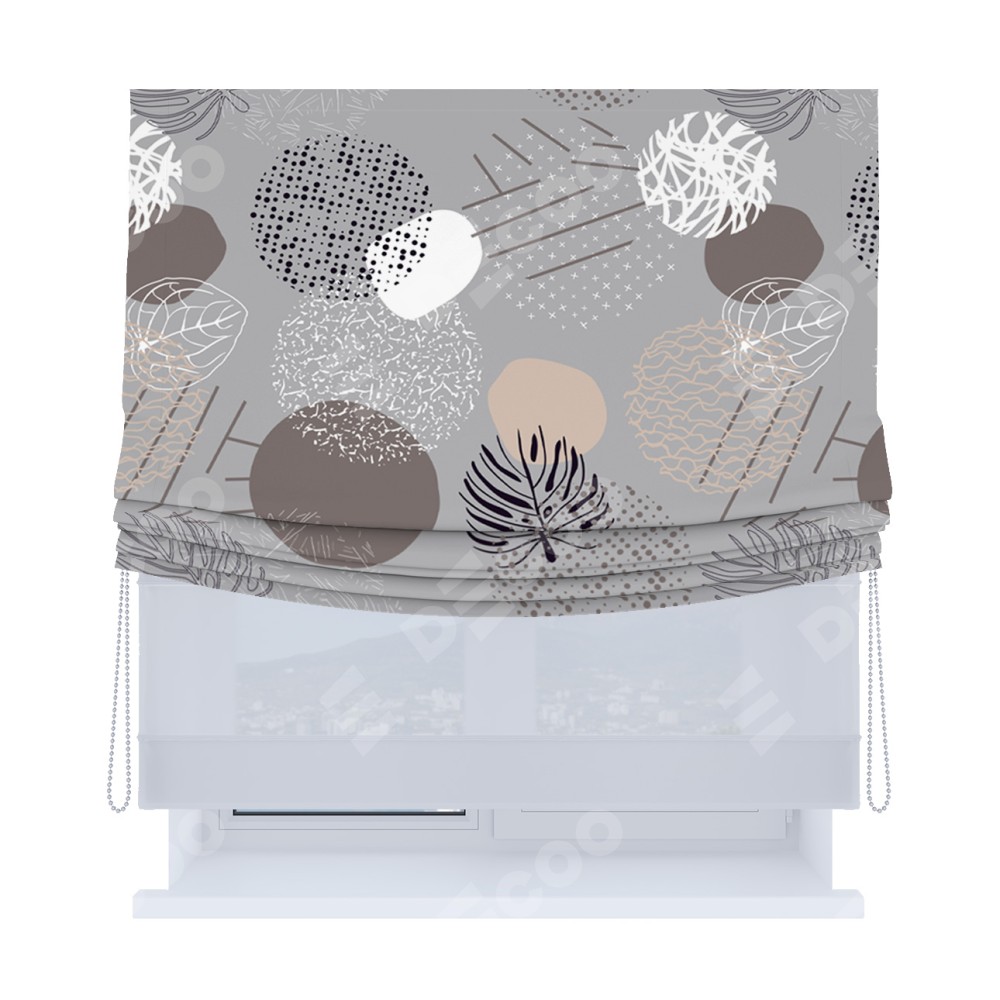 Римская штора «Кортин», день-ночь с мягкими складками, «Ботаника абстракция»