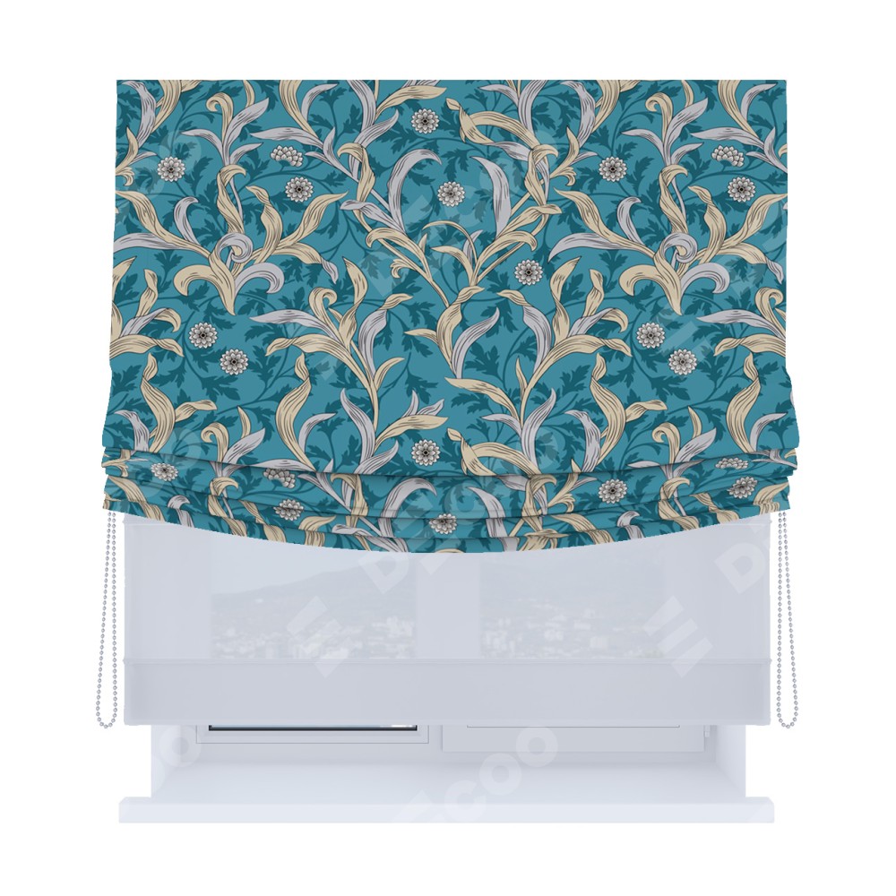 Римская штора «Кортин», день-ночь с мягкими складками, «Винтажные листья»