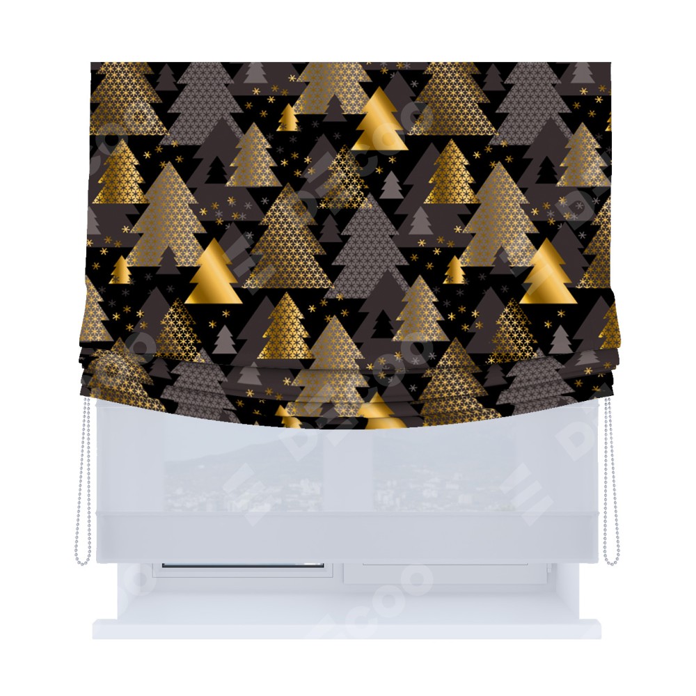 Римская штора день-ночь производителя «Cortin», используется для проёма, пошита из двух полотен, с лицевой блэкаут с нанесением сублимационной печати «Магия праздника», вторая ткань тюль (по стандарту комплектуется тюль белого цвета артикул V-01). Имеет универсальный механизм и подходит для монтажа: на потолок, на стену и в нишу. Удобное управление каждой шторой отдельно.