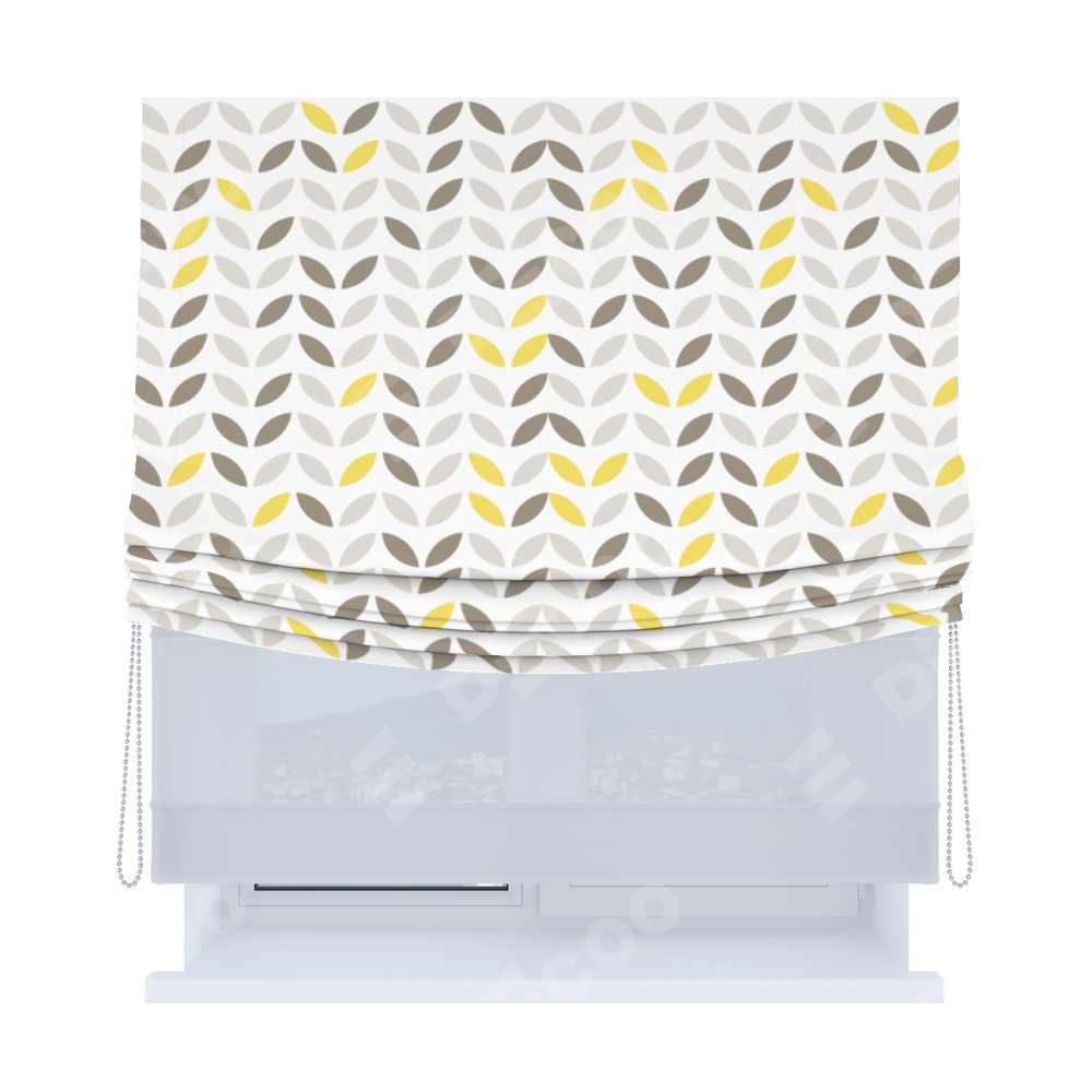 Римская штора «Кортин», день-ночь с мягкими складками, «Маленькие листочки»