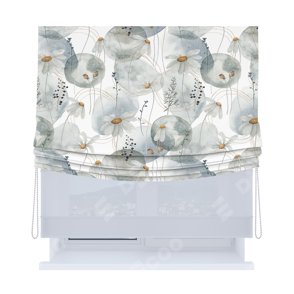 Римская штора «Кортин», день-ночь с мягкими складками, «Ромашки акварель»