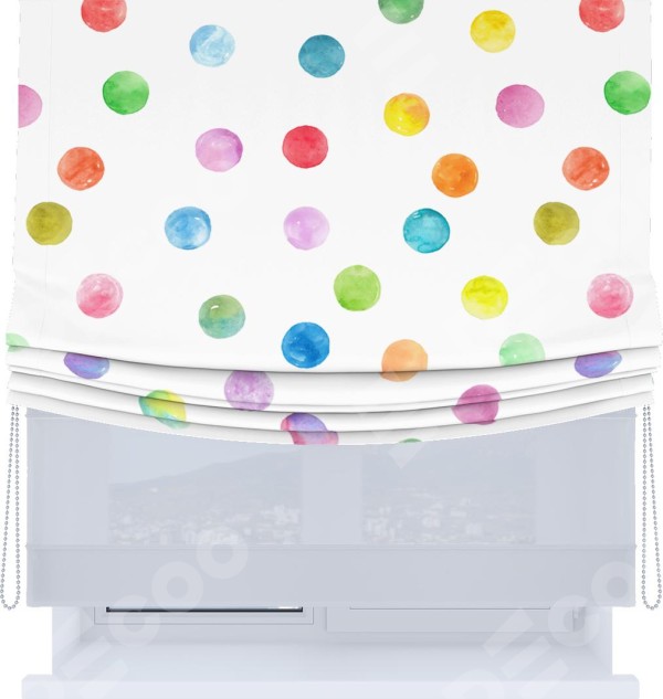 Римская штора «Кортин», день-ночь с мягкими складками, «Цветные круги»