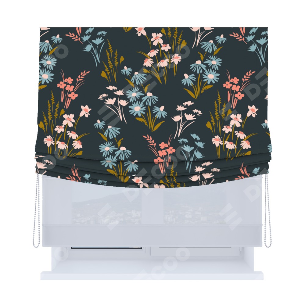 Римская штора «Кортин», день-ночь с мягкими складками, «Чарующие цветы»