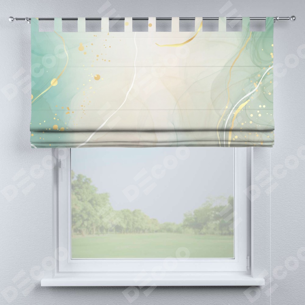 Римская штора производителя «Cortin», используется для проёма, пошита из ткани блэкаут с нанесением сублимационной печати «Изумрудно-серый мрамор». Данная модель пошита на петлях, комплектуется на выбор круглым карнизом и подходит для монтажа на стену. Римская штора на петлях имеет простую систему регулировки высоты, отличительным преимуществом данной модели является простой способ монтажа. Достаточно повесить ее на трубу и штора готова!