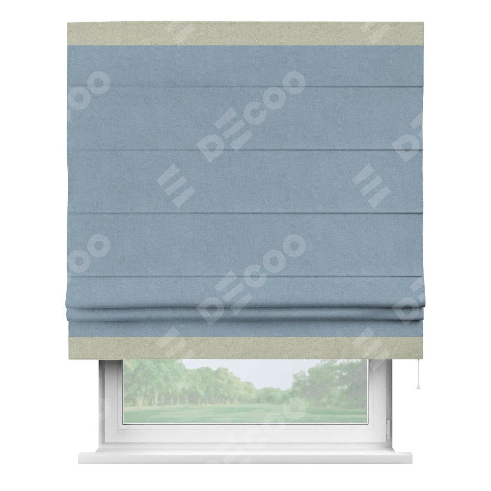 Римская штора «Кортин» с кантом Горизонт, для проема, лён блэкаут голубой