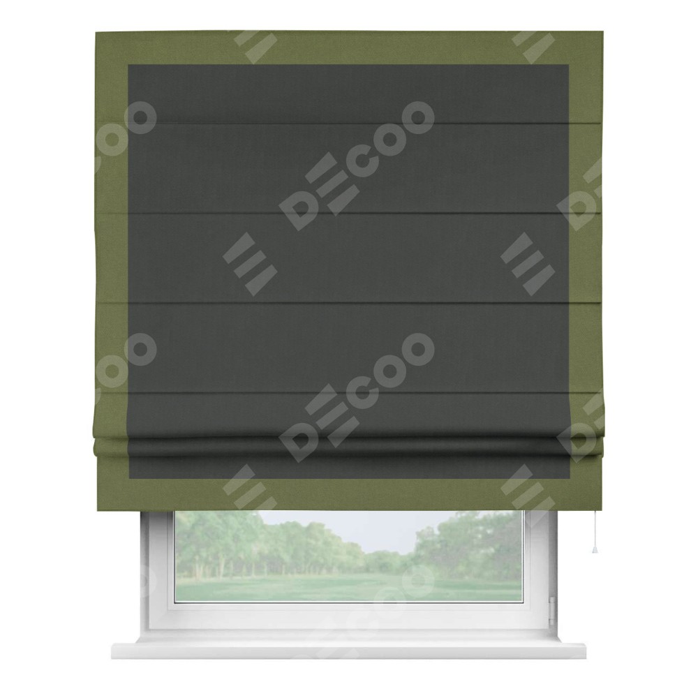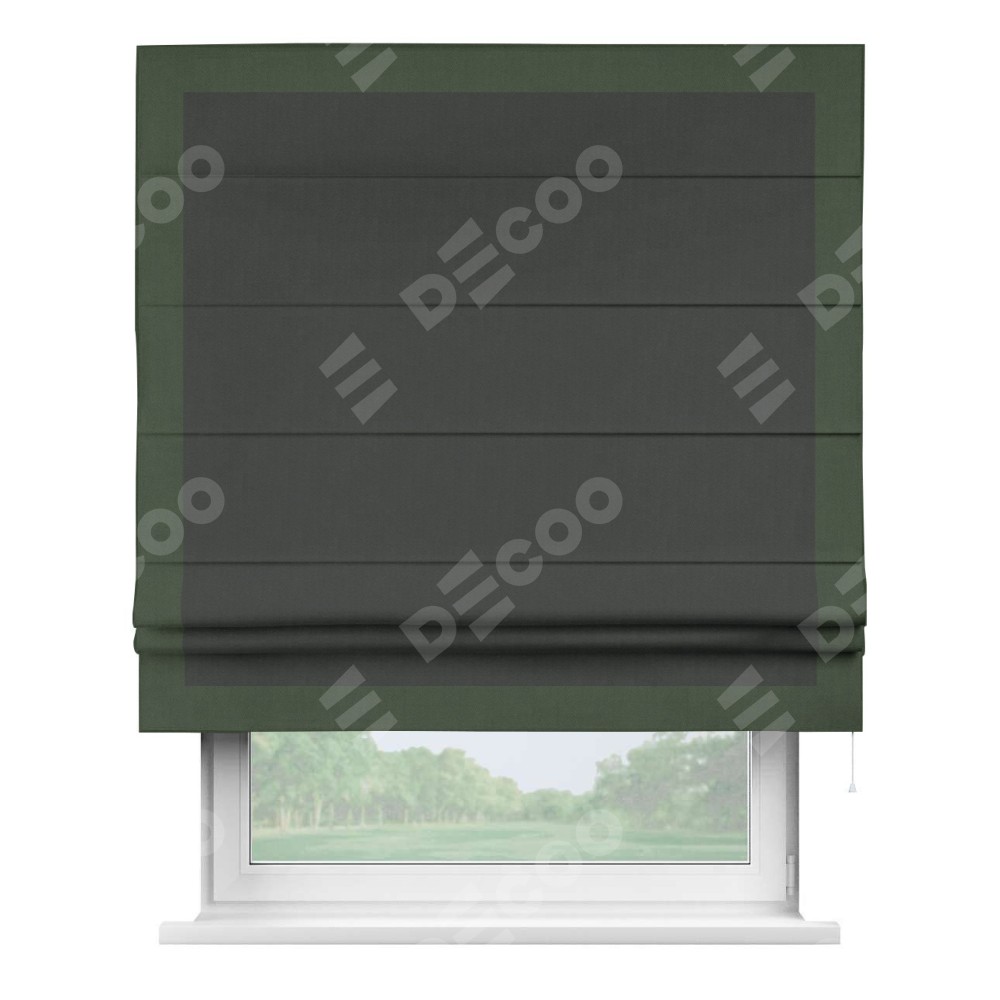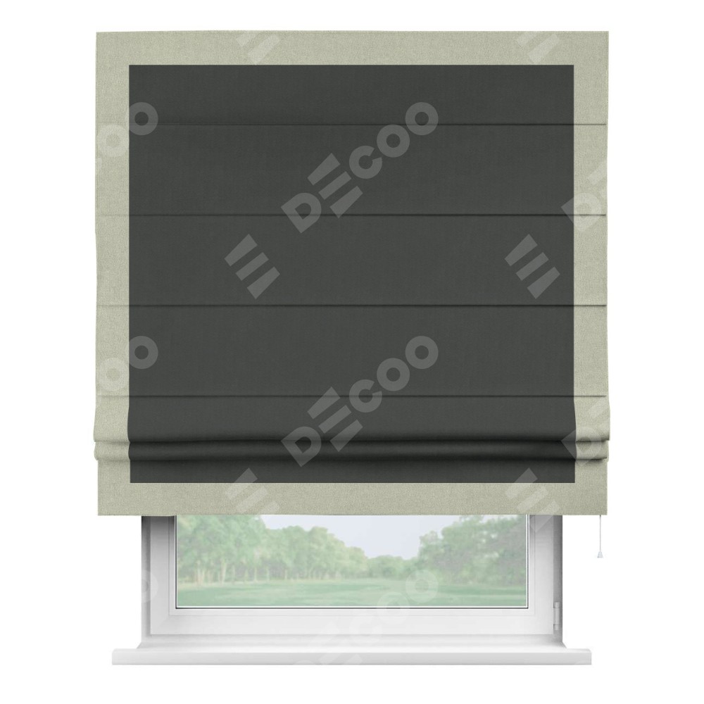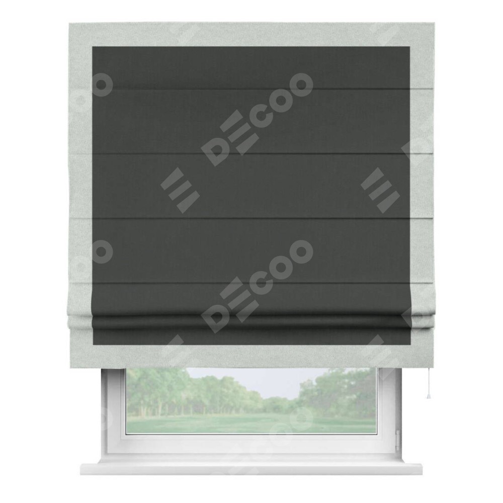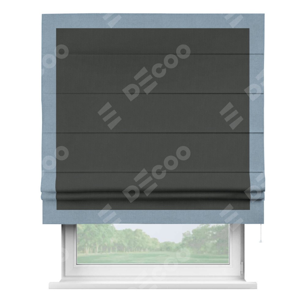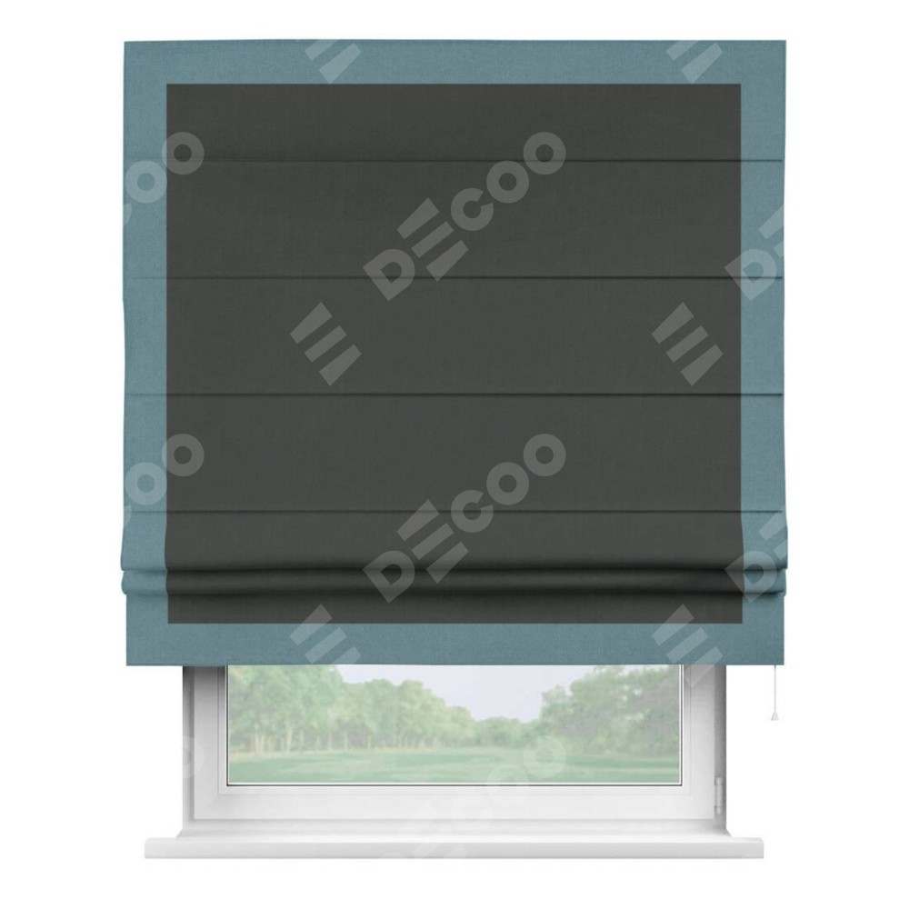 Римская штора «Кортин» с кантом Чесс, для проема, лён блэкаут графит
