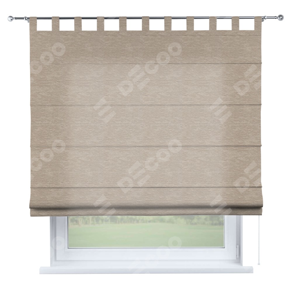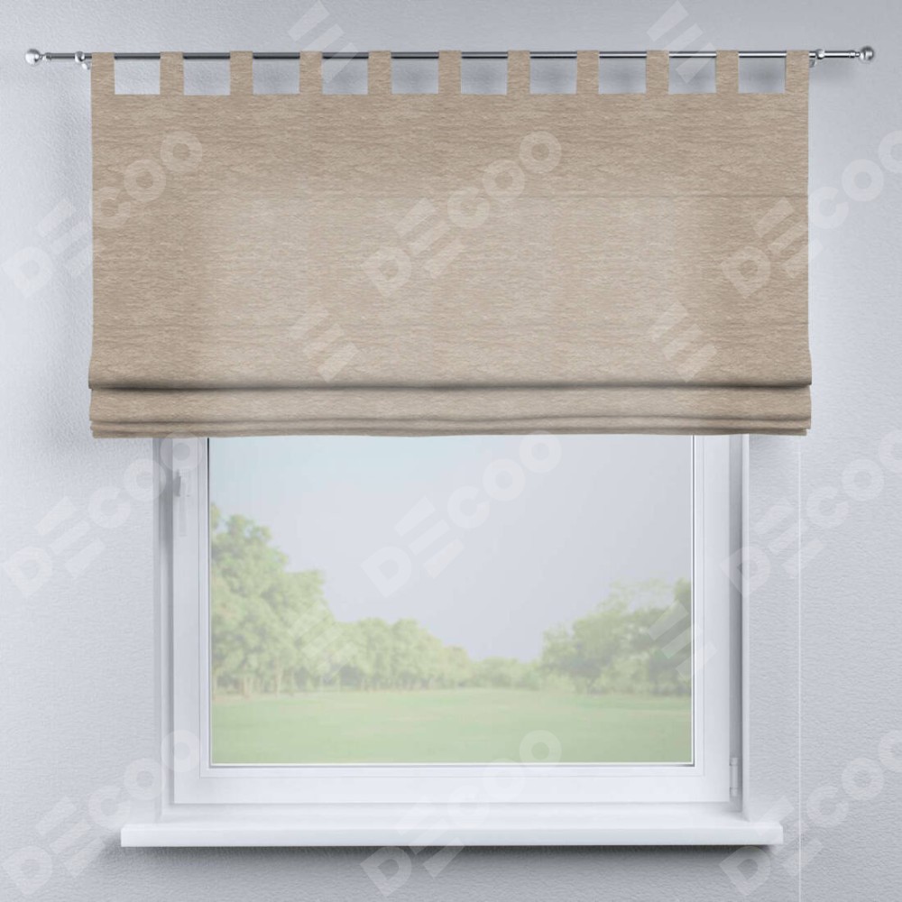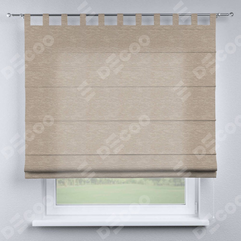 Римская штора производителя «Cortin», используется для проёма, пошита из ткани софт однотонный тёмно-бежевый, артикул ткани 1640. Данная модель пошита на петлях, комплектуется на выбор круглым карнизом и подходит для монтажа на стену. Римская штора на петлях имеет простую систему регулировки высоты, отличительным преимуществом данной модели является простой способ монтажа. Достаточно повесить ее на трубу и штора готова!