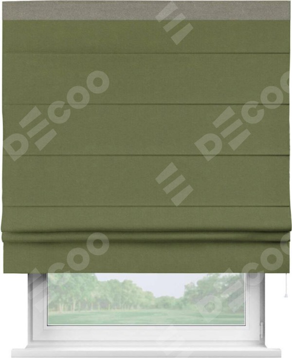 Римская штора «Кортин» с кантом Кинг, для проема, лён блэкаут оливковый