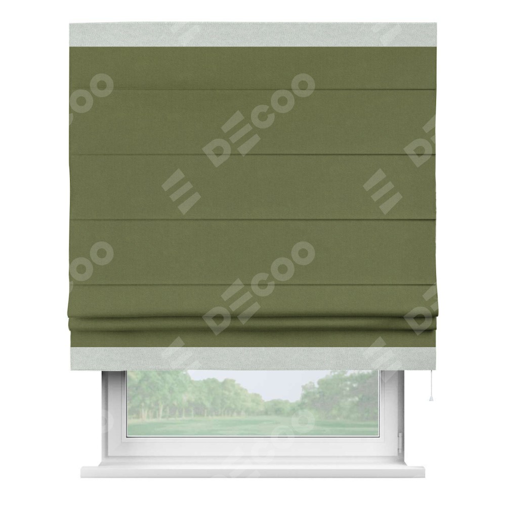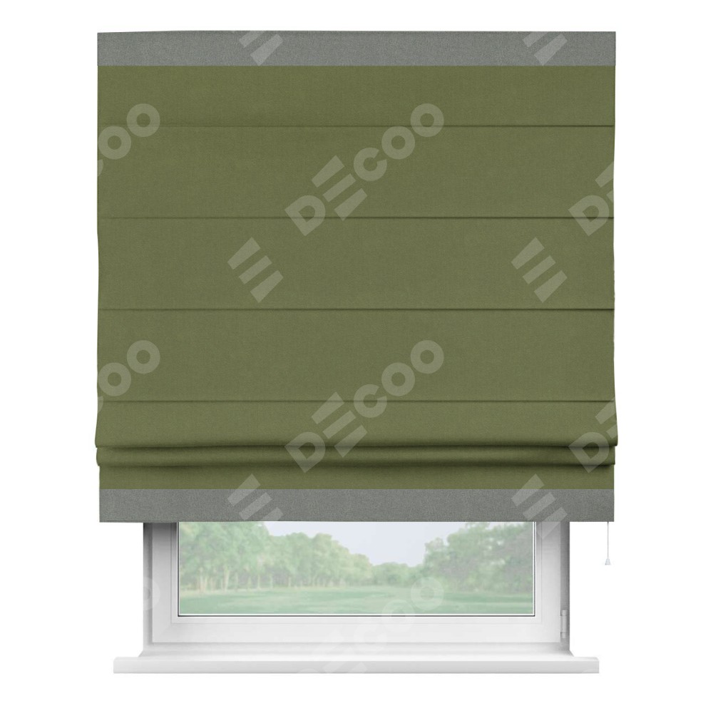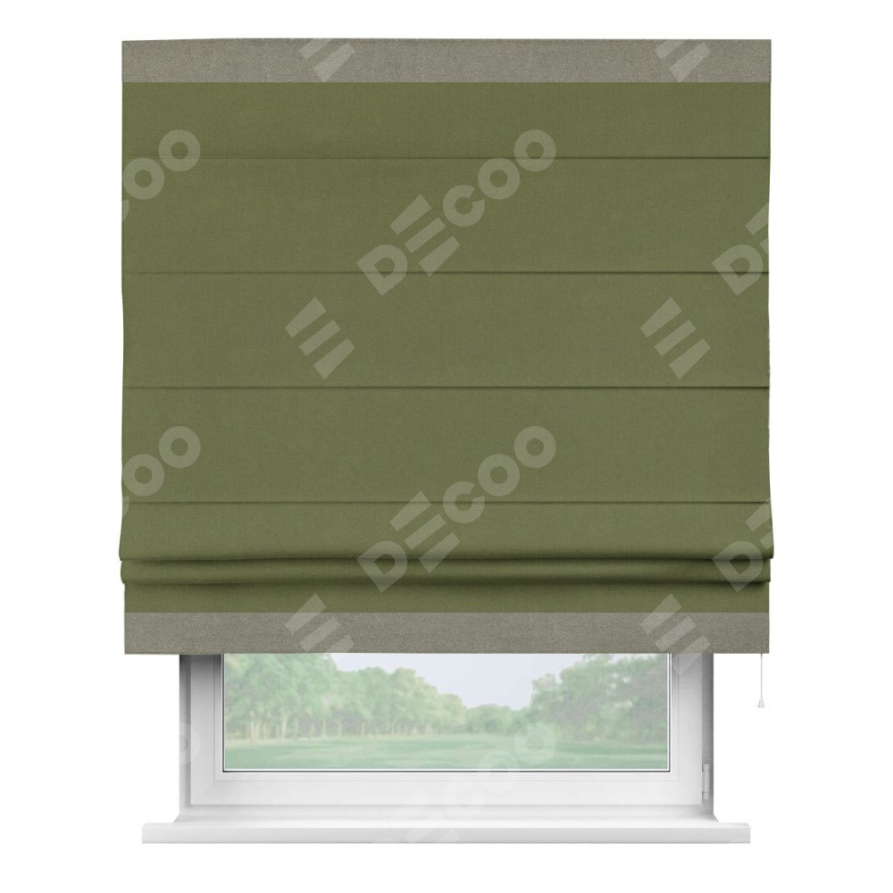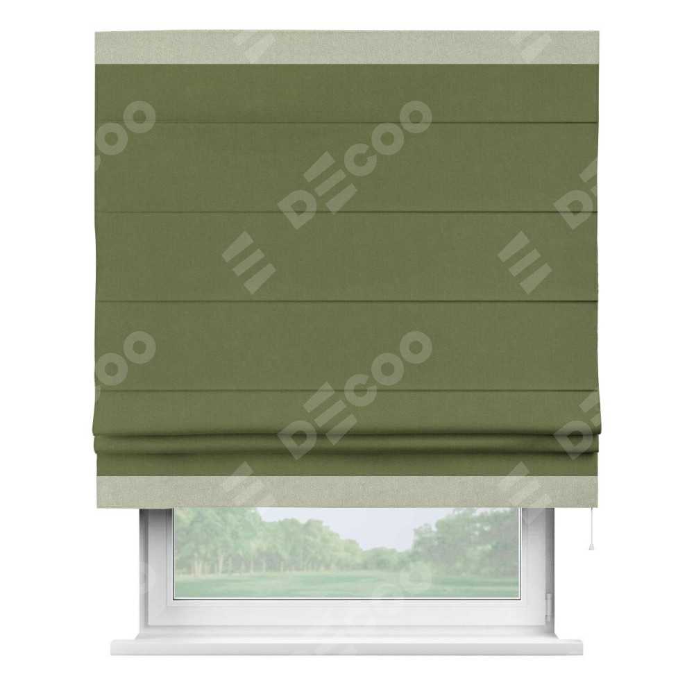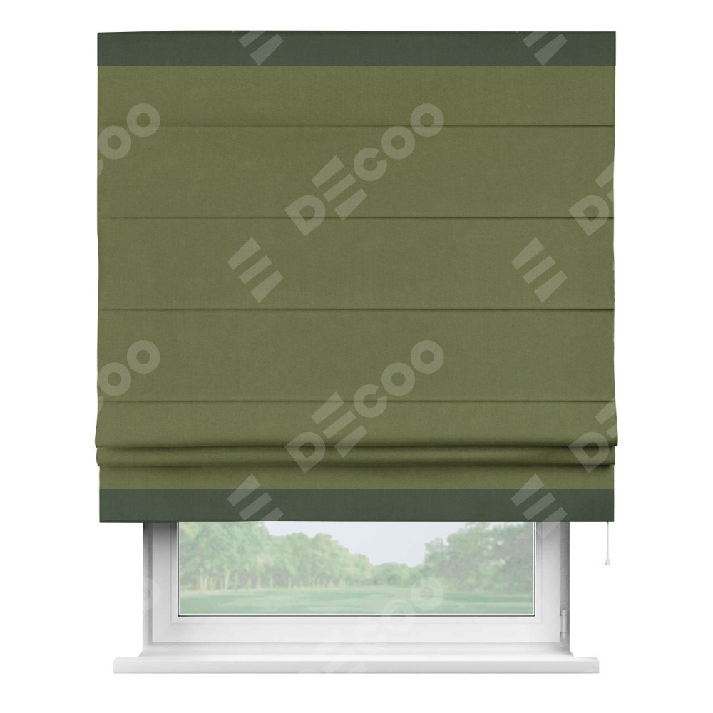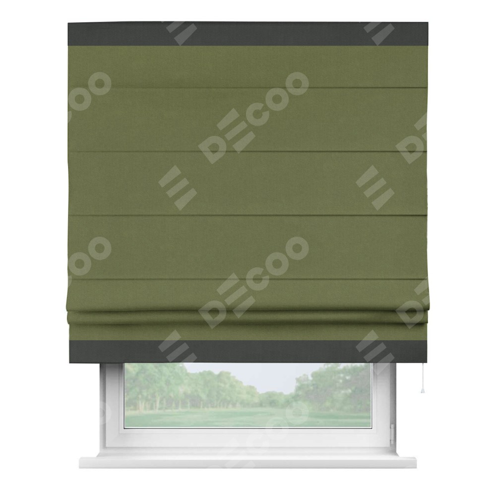 Римская штора «Кортин» с кантом Горизонт, для проема, лён блэкаут оливковый