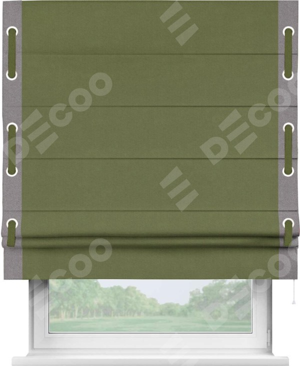 Римская штора «Кортин» с кантом Стрим Дуо (люверсы с пояском), для проема, лён блэкаут оливковый
