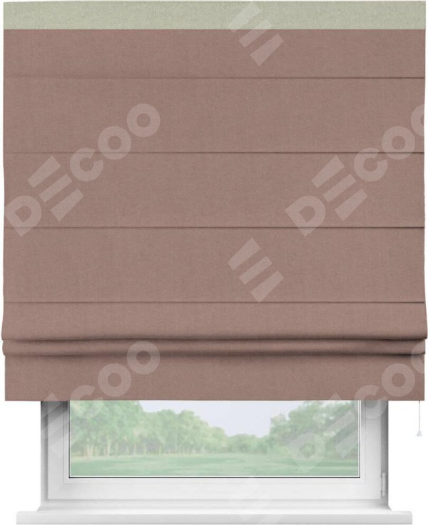 Римская штора производителя «Cortin», используется для проёма, пошита из ткани лён блэкаут розовый, артикул 69575. Отделка шторы кантом «Кинг», ткань для канта используется из льна разной расцветки на выбор. Имеет универсальный механизм и подходит для монтажа: на потолок, на стену и в нишу.