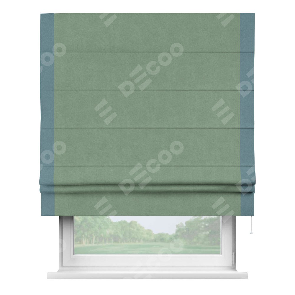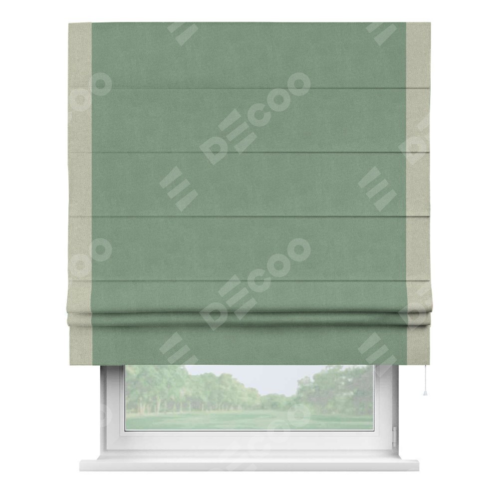 Римская штора «Кортин» с кантом Стрим Дуо, для проема, лён блэкаут светло-бирюзовый