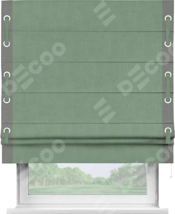 Римская штора «Кортин» с кантом Стрим Дуо (люверсы с пояском), для проема, лён блэкаут светло-бирюзовый