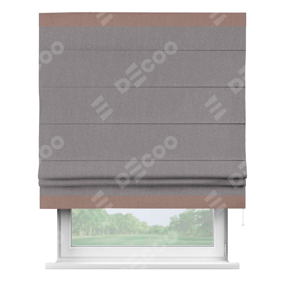 Римская штора производителя «Cortin», используется для проёма, пошита из ткани лён блэкаут сиреневый, артикул 69576. Отделка шторы кантом «Горизонт», ткань для канта используется из льна разной расцветки на выбор. Имеет универсальный механизм и подходит для монтажа: на потолок, на стену и в нишу.