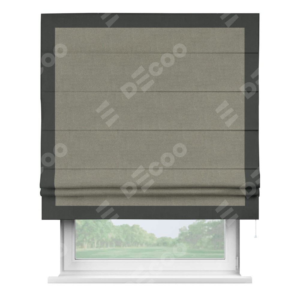 Римская штора «Кортин» с кантом Чесс, для проема, лён блэкаут шампань