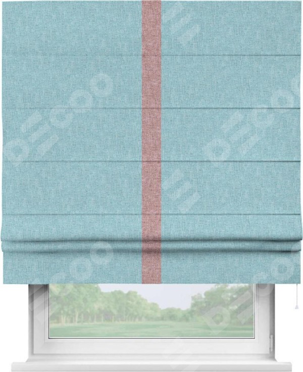 Римская штора «Кортин» с кантом Хайвэй, для проема, ткань лён кашемир голубой