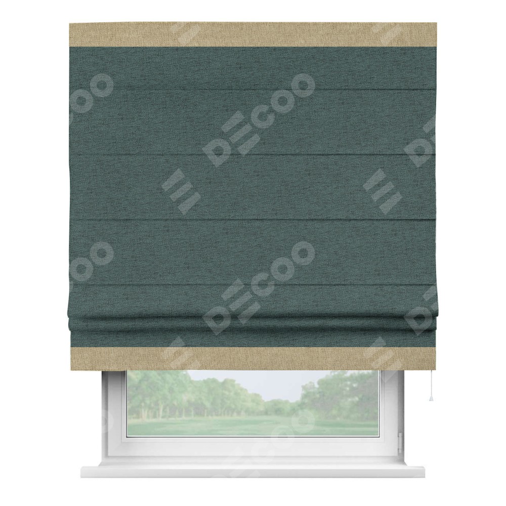 Римская штора «Кортин» с кантом Горизонт, для проема, ткань стиф димаут сине-зелёный