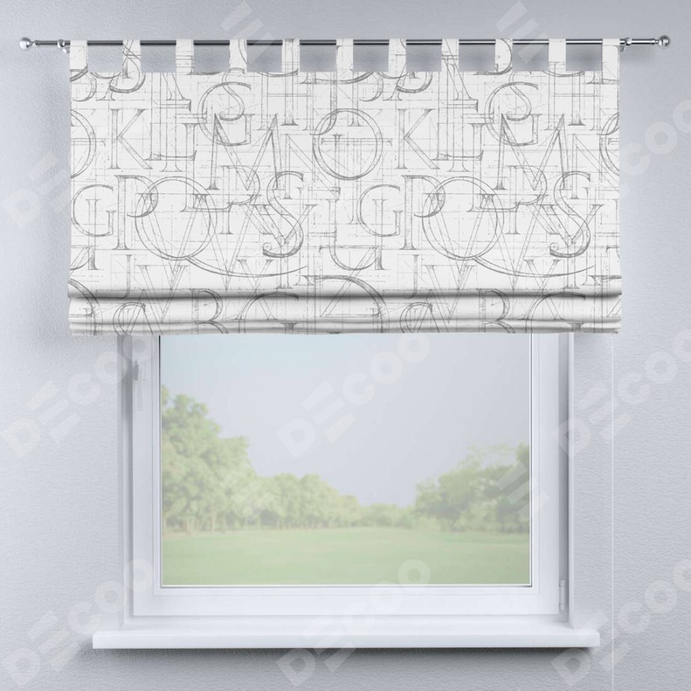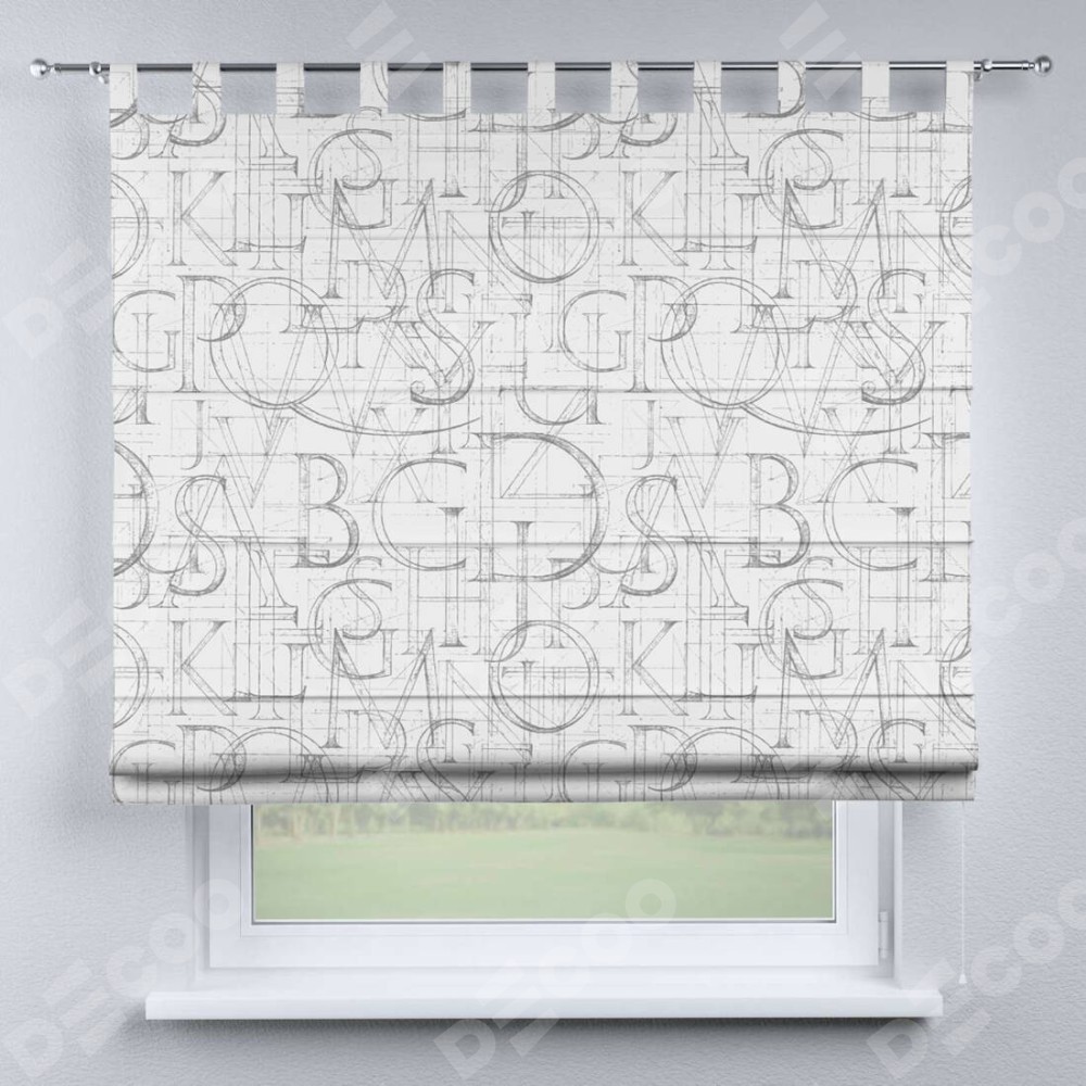 Римская штора производителя «Cortin», используется для проёма, пошита из ткани блэкаут с нанесением сублимационной печати «Античные буквы». Данная модель пошита на петлях, комплектуется на выбор круглым карнизом и подходит для монтажа на стену. Римская штора на петлях имеет простую систему регулировки высоты, отличительным преимуществом данной модели является простой способ монтажа. Достаточно повесить ее на трубу и штора готова!