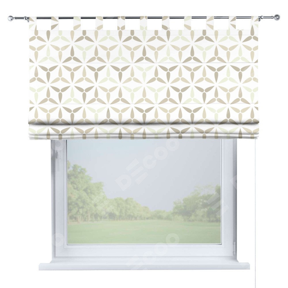 Римская штора производителя «Cortin», используется для проёма, пошита из ткани блэкаут с нанесением сублимационной печати «Бежевая графика». Данная модель пошита на петлях, комплектуется на выбор круглым карнизом и подходит для монтажа на стену. Римская штора на петлях имеет простую систему регулировки высоты, отличительным преимуществом данной модели является простой способ монтажа. Достаточно повесить ее на трубу и штора готова!