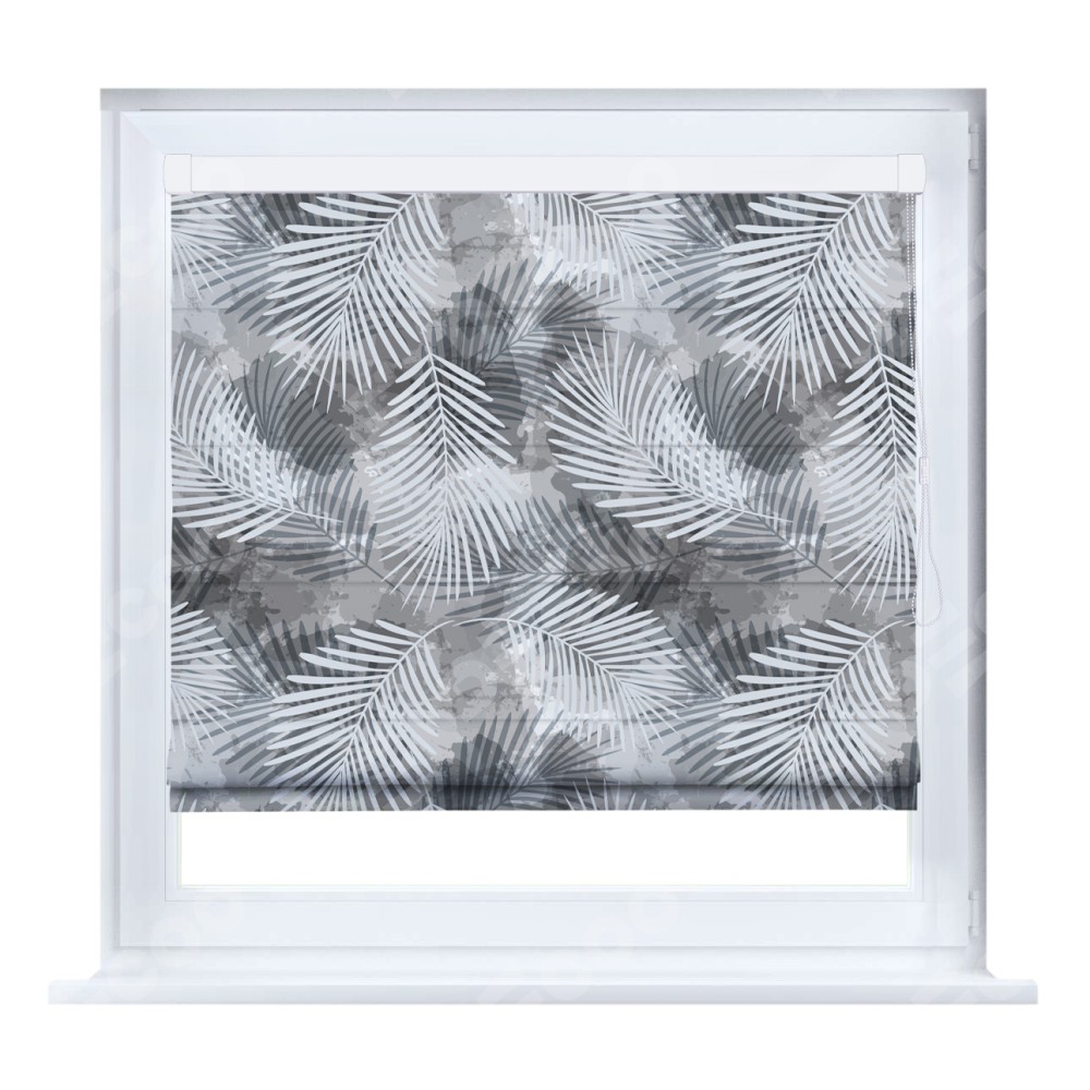 Римская штора производителя «Cortin», устанавливается на створку окна, пошита из ткани блэкаут с нанесением сублимационной печати «Листья в тени». Штора шьётся по индивидуальным размерам, для данного типа римской шторы возможная ширина от 35 до 150 см., высота до 250 см.