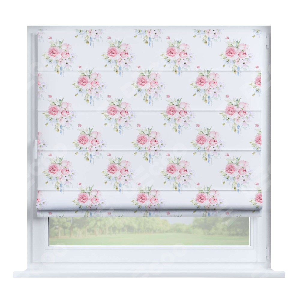 Римская штора производителя «Cortin», устанавливается на створку окна, пошита из ткани блэкаут с нанесением сублимационной печати «Нежный розарий». Штора шьётся по индивидуальным размерам, для данного типа римской шторы возможная ширина от 35 до 150 см., высота до 250 см.