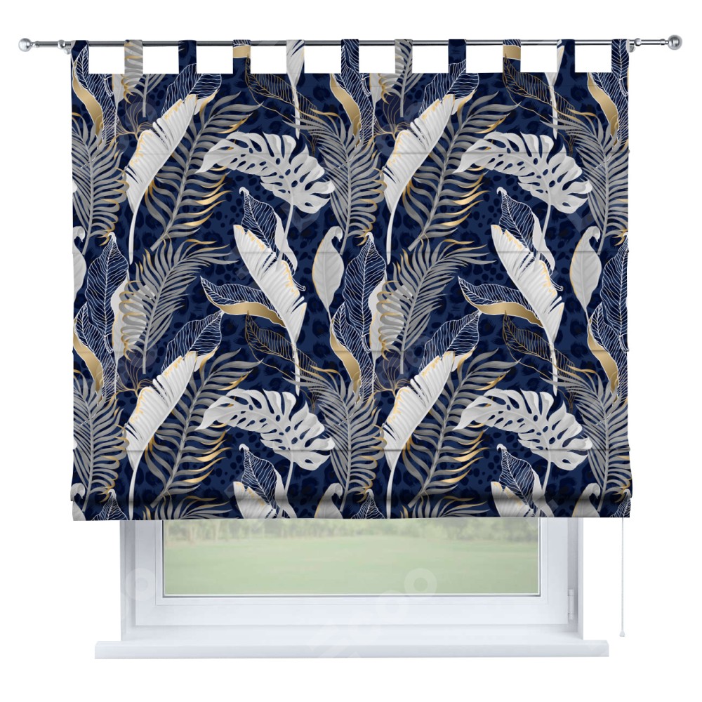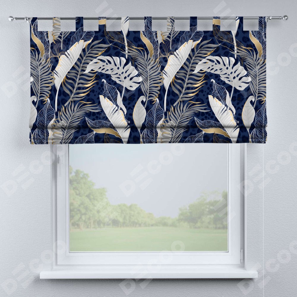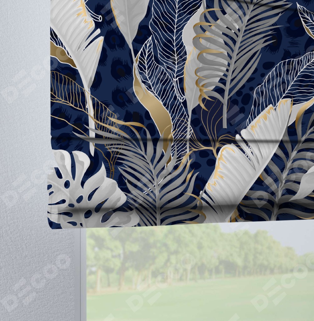 Римская штора производителя «Cortin», используется для проёма, пошита из ткани блэкаут с нанесением сублимационной печати «Сине-золотые джунгли». Данная модель пошита на петлях, комплектуется на выбор круглым карнизом и подходит для монтажа на стену. Римская штора на петлях имеет простую систему регулировки высоты, отличительным преимуществом данной модели является простой способ монтажа. Достаточно повесить ее на трубу и штора готова!