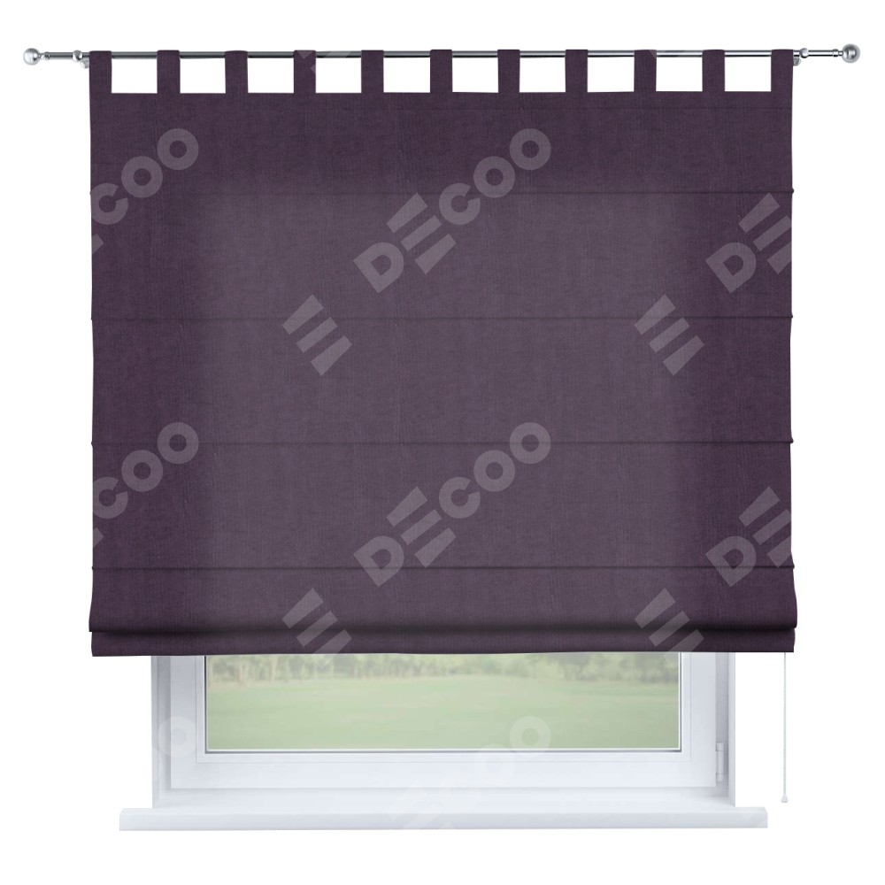 Римская штора производителя «Cortin», используется для проёма, пошита из ткани канвас баклажановый, артикул ткани v-111. Данная модель пошита на петлях, комплектуется на выбор круглым карнизом и подходит для монтажа на стену. Римская штора на петлях имеет простую систему регулировки высоты, отличительным преимуществом данной модели является простой способ монтажа. Достаточно повесить ее на трубу и штора готова!