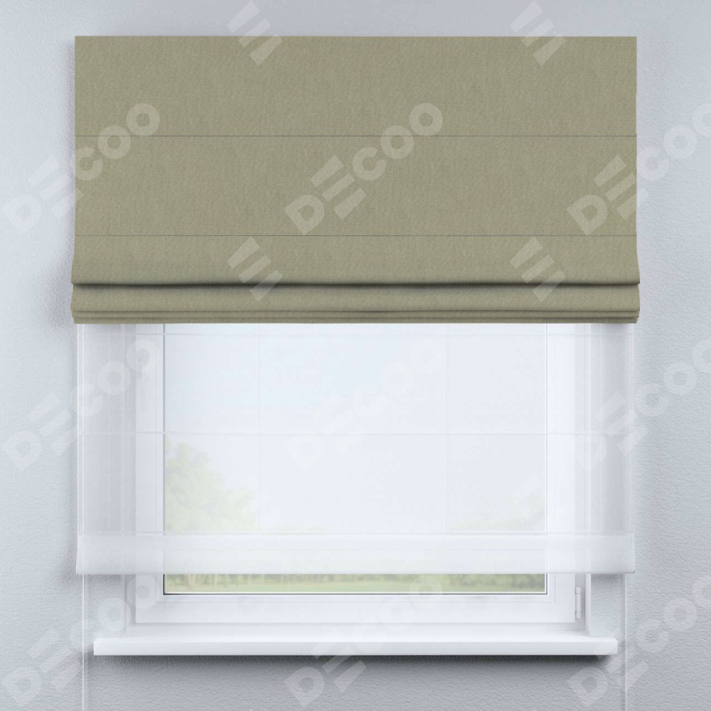 Римская штора день-ночь производителя «Cortin», используется для проёма, пошита из двух полотен, с лицевой стороны канвас латте артикул v-12490, вторая ткань тюль (по стандарту комплектуется тюль белого цвета артикул V-01). Имеет универсальный механизм и подходит для монтажа: на потолок, на стену и в нишу.