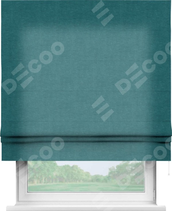 Римская штора производителя «Cortin», используется для проёма, пошита из ткани канвас ментоловый, артикул ткани v-114. Имеет универсальный механизм и подходит для монтажа: на потолок, на стену и в нишу.