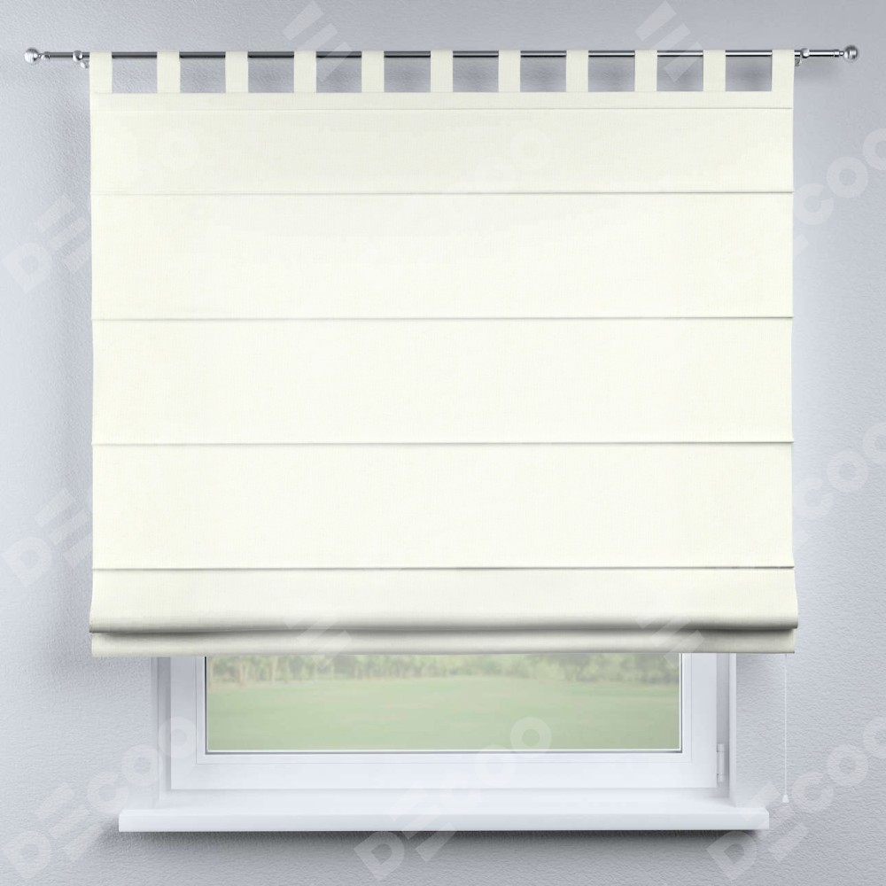 Римская штора производителя «Cortin», используется для проёма, пошита из ткани канвас молочный, артикул ткани v-93. Данная модель пошита на петлях, комплектуется на выбор круглым карнизом и подходит для монтажа на стену. Римская штора на петлях имеет простую систему регулировки высоты, отличительным преимуществом данной модели является простой способ монтажа. Достаточно повесить ее на трубу и штора готова!