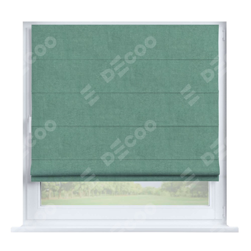 Римская штора производителя «Cortin», устанавливается на створку окна, пошита из ткани канвас мятный, артикул v-248. Штора шьётся по индивидуальным размерам, для данного типа римской шторы возможная ширина от 35 до 150 см., высота до 250 см.