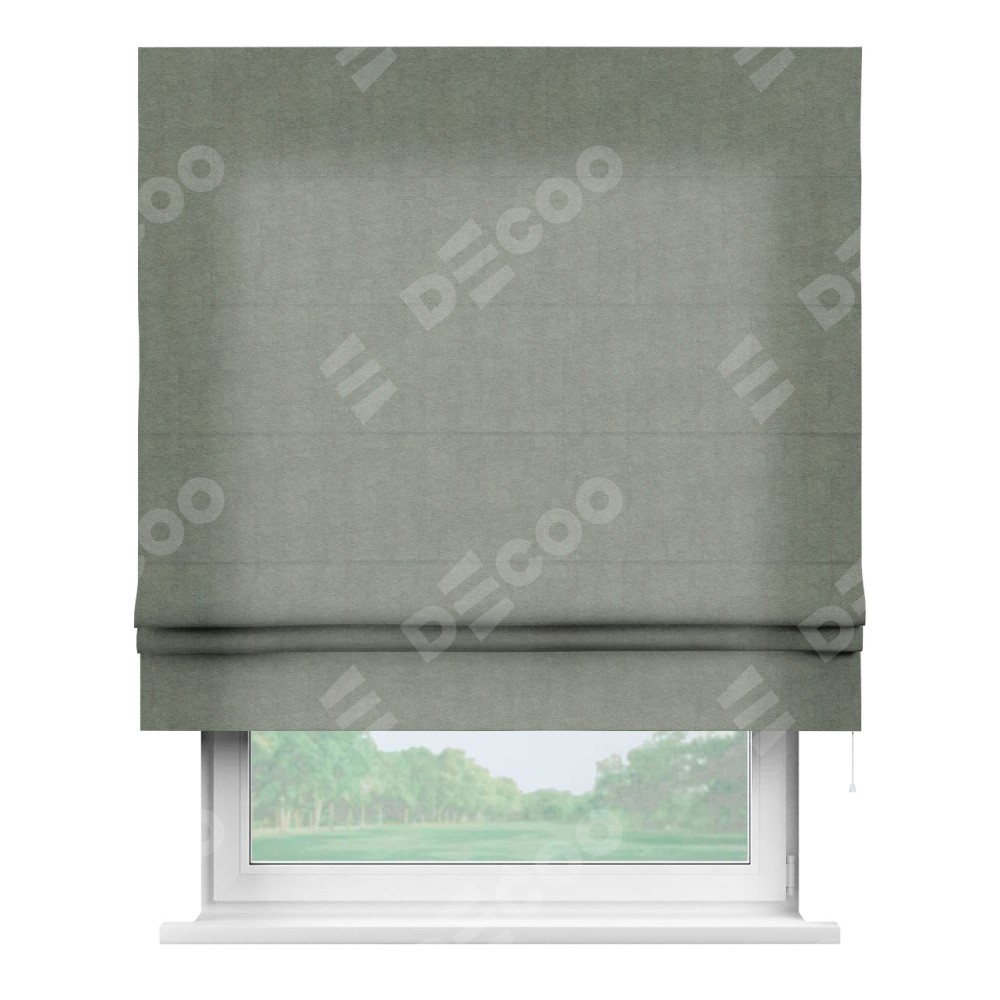 Римская штора производителя «Cortin», используется для проёма, пошита из ткани канвас сизый, артикул ткани v-1902. Имеет универсальный механизм и подходит для монтажа: на потолок, на стену и в нишу.