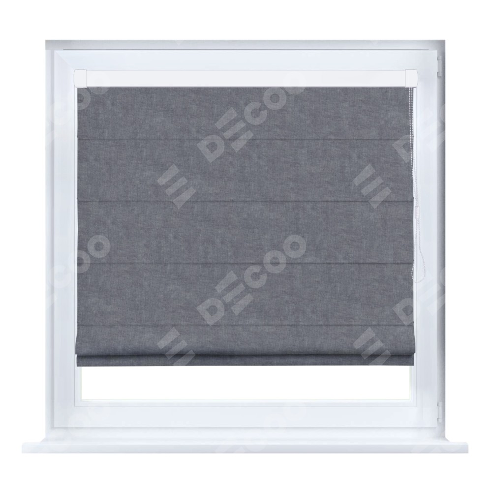 Римская штора производителя «Cortin», устанавливается на створку окна, пошита из ткани канвас стальной, артикул v-1082. Штора шьётся по индивидуальным размерам, для данного типа римской шторы возможная ширина от 35 до 150 см., высота до 250 см.