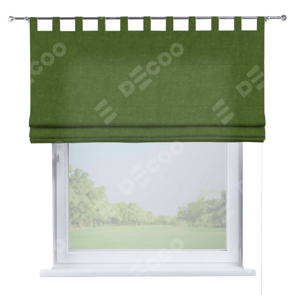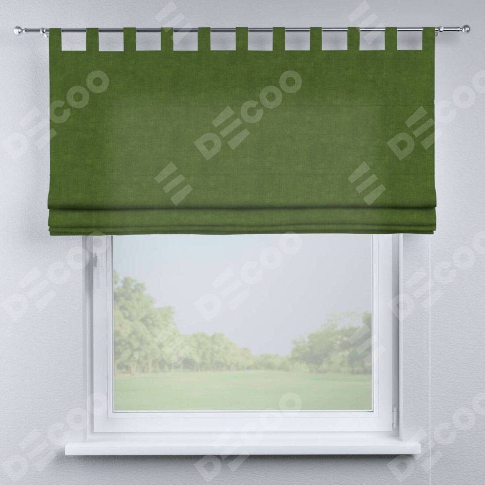 Римская штора производителя «Cortin», используется для проёма, пошита из ткани канвас трава, артикул ткани v-473. Данная модель пошита на петлях, комплектуется на выбор круглым карнизом и подходит для монтажа на стену. Римская штора на петлях имеет простую систему регулировки высоты, отличительным преимуществом данной модели является простой способ монтажа. Достаточно повесить ее на трубу и штора готова!