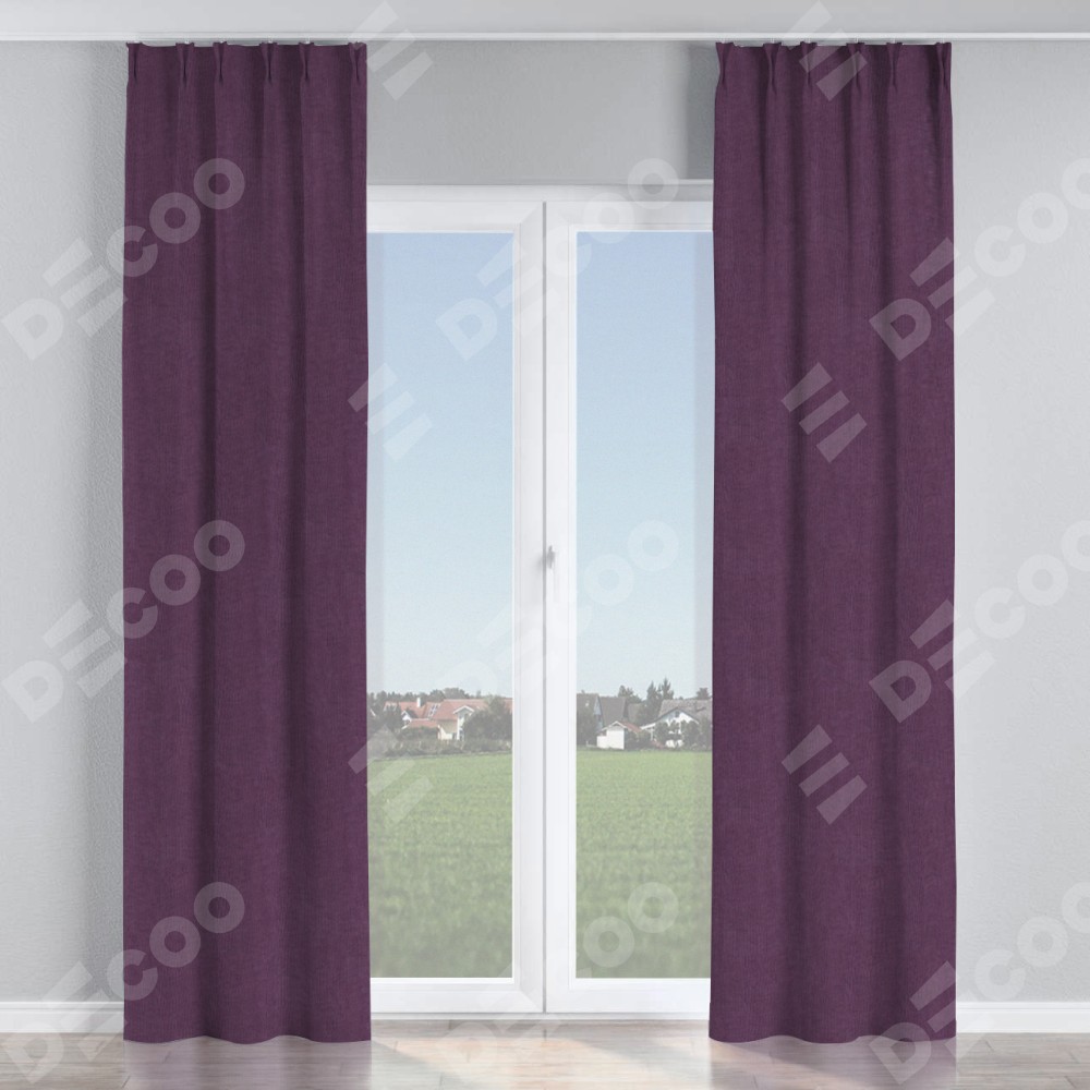 Комплект прямых штор, от производителя «Cortin», пошиты из ткани канвас баклажановый, артикул ткани v-111. С изнаночной стороны в верхней части штор пристрачивается шторная лента с декоративными складками «Кустик». Для создания элегантных складок прямые шторы шьются по стандарту с коэффициентом 1:2 (на 100 см. ширины проёма 200 см. ширины ткани).