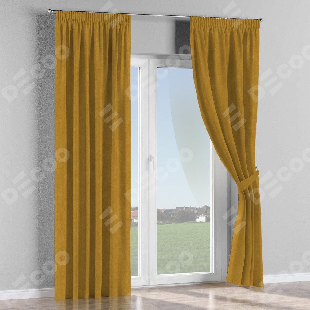 Комплект штор канвас горчица, на тесьме «Карандаш»
